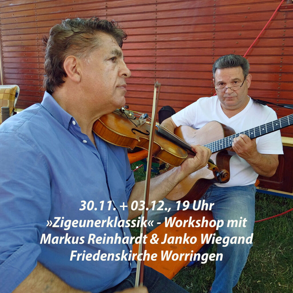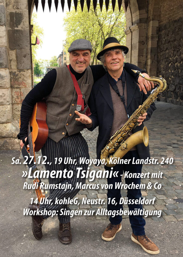 Im Rheinland gibt es eine erstaunliche Vielfalt an Sinti-, Roma-, bzw. Zigeunerkulturen*. Sowohl alteingesessene Musikerfamilien als auch zugewanderte Künstler aus Osteuropa und Südeuropa. Diesen Reichtum wollen wir erhalten und fördern, auch weil diese Musik- und Festkultur eine wichtige Rolle für eine friedliche, zukunftsfähige Gesellschaft spielen kann. Das durften wir schon bei vielen Veranstaltungen im Raum Köln feststellen, z.B. bei den Rheinischen Zigeunerfestivals oder den Zigeunerwagen-Touren. Da einige der beteiligten Künstler sehr gute Musiklehrer und Kulturvermittler sind, bietet die »Gypsy Power Tour« nun Workshops und Konzerte zwischen Köln und Düsseldorf an, die interessierten Laien Einblick in die großartigen Musiktraditionen bieten. (*die beteiligten Künstler verwenden den alten Kulturbegriff »Zigeuner« mit Stolz und wollen seine positive Seite stärken.) – Gefördert vom Landesmusikrat