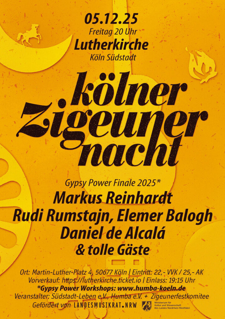 Zur diesjährigen Zigeunernacht gibt es eine Reihe von Workshops, bei denen unsere Meister, Rudi, Markus, Daniel & Freunde, Einblick in die Kunst der Zigeunermusik geben werden. Anmeldung unter: info@humba.de